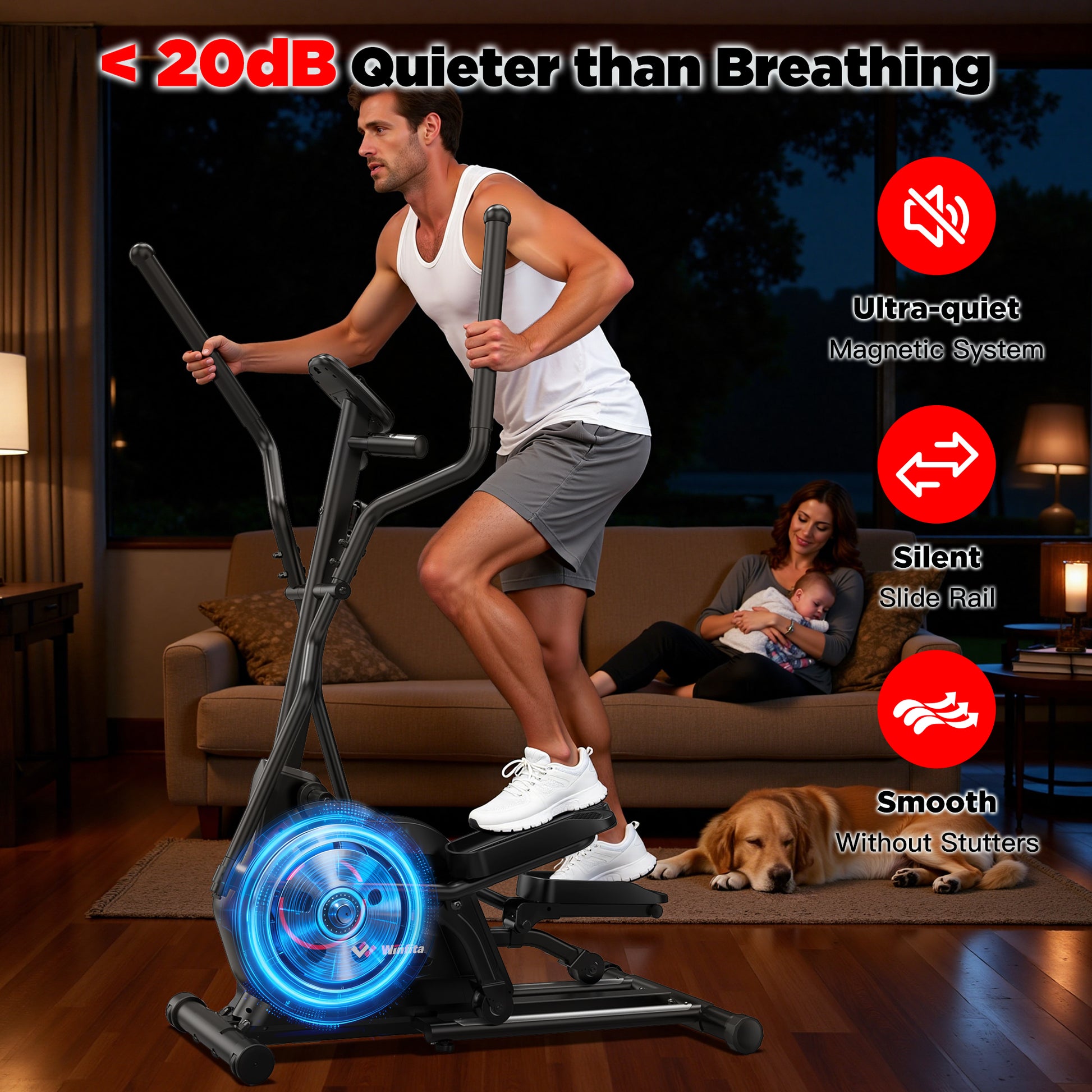 Elliptical Exercise Machine for Home, 2-in-1 Compact Training Machines with 14 Resistance Levels,12LB Flywheel,Low Impact Magnetic Cross Trainer, Quiet Portable Elliptical for Seniors & Small Spaces