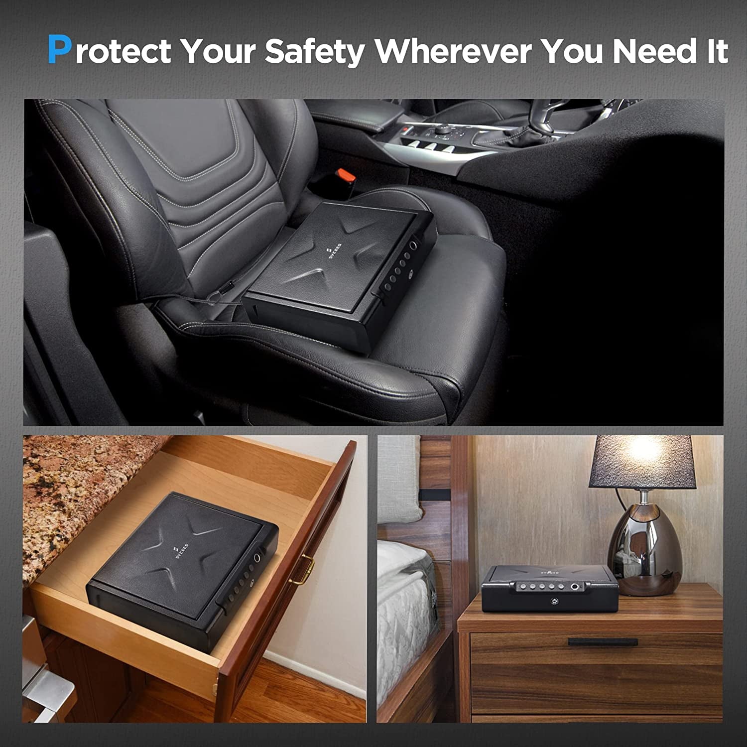Fingerprint Gun Safe: Quick-access gun safe is absolutely important for a family. No matter to protect your handguns from your children or just to keep your items unaccessible while unsupervised. It's responsible to store them securely in this handgun safe and right where you need them. Biometrics keeps your contents secure with immediate accessibility. SYCEES gun safe box helps you access the handgun safe quickly when you need it most and bring you more time when in danger.