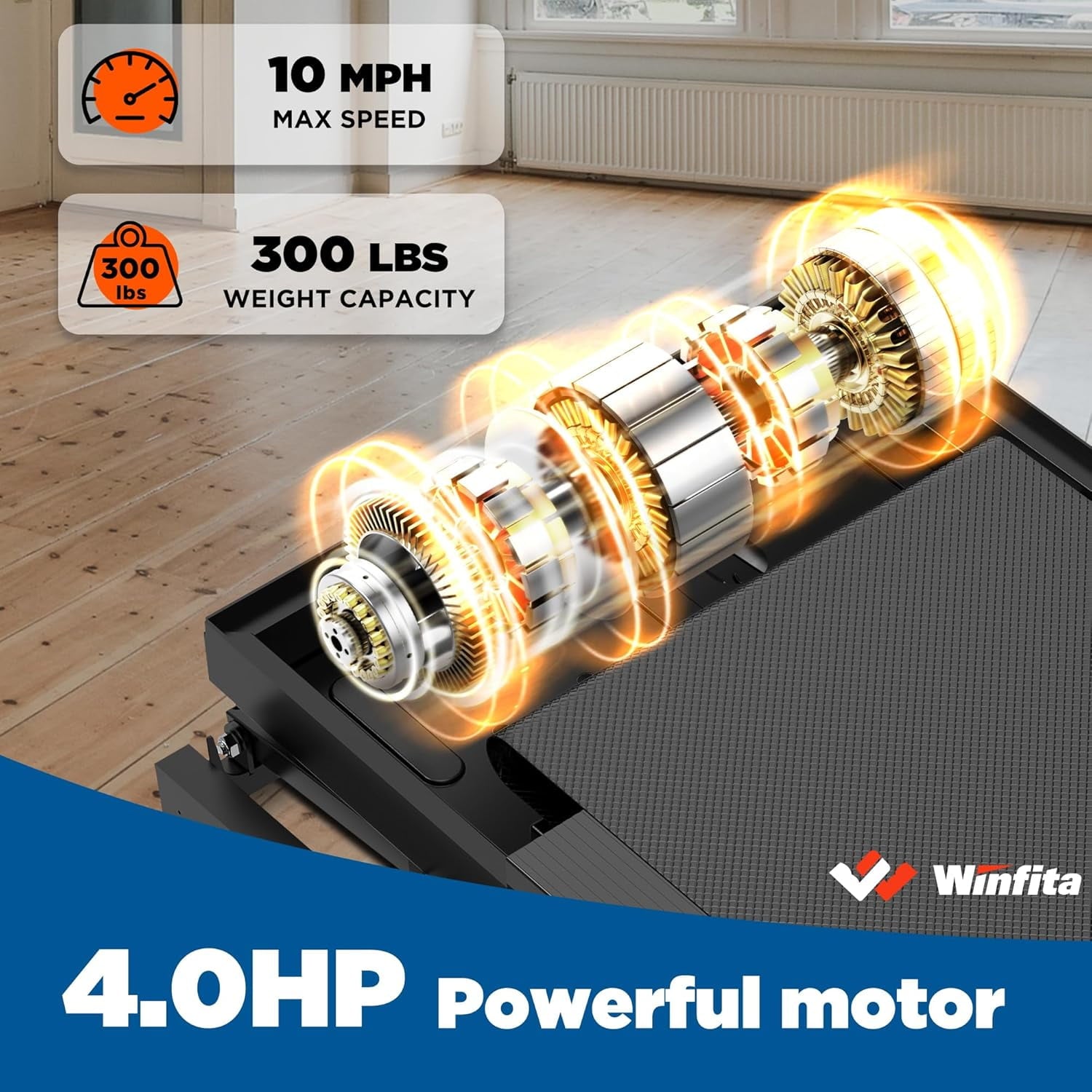 15% Auto Incline Treadmill for Home and Office, Portable Foldable Treadmills with 300 Lbs Weight Capacity, 4.0HP Quiet Walking Pad Treadmill, Pulse Monitor, BMI Detector, 50"x18"