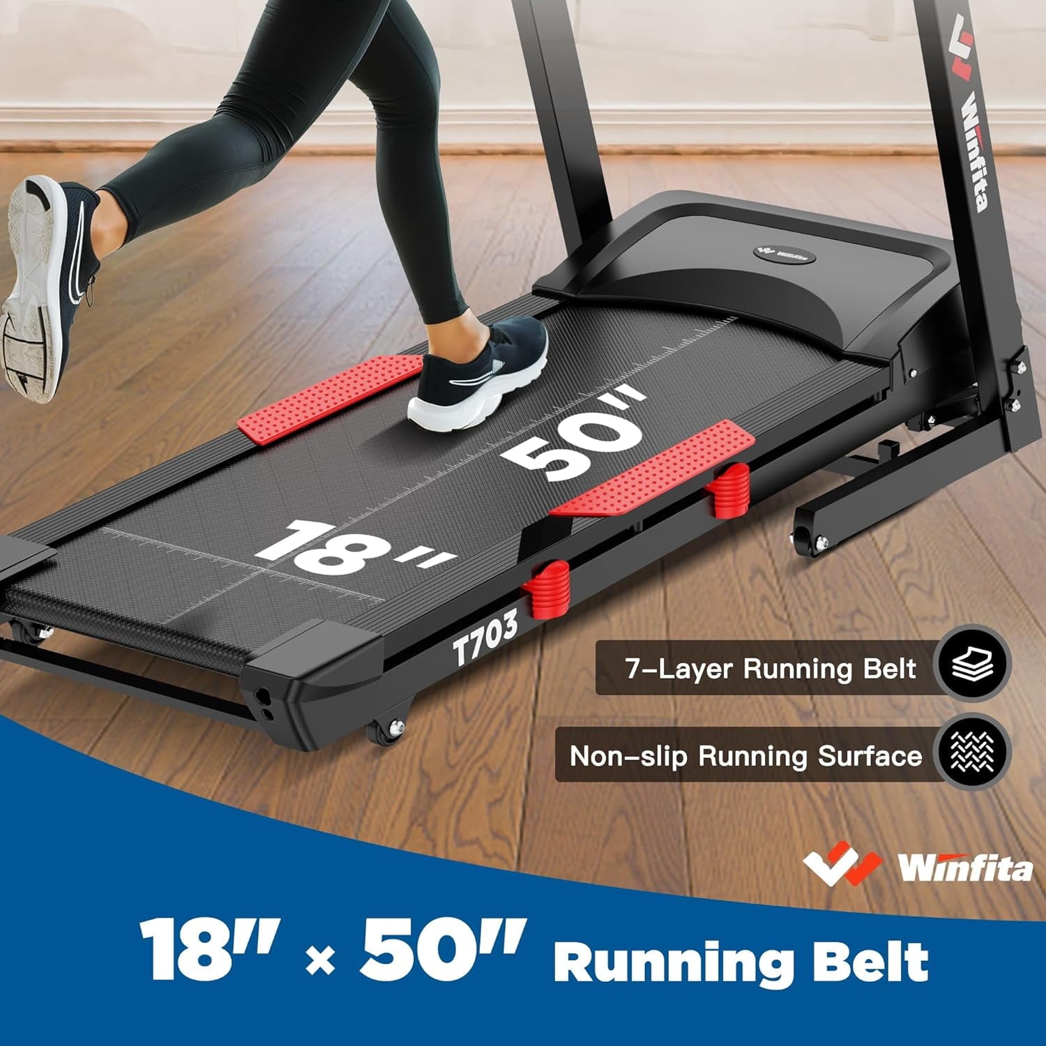 Elevate your home workouts with this smart treadmill, featuring customizable programs, Bluetooth connectivity, and a cushioned running surface for low-impact training. DIGITAL MONITOR Track your speed, time, distance, calories/recline, steps, and body fat percentage. PULSE SENSORS Grab the easy-to-reach pulse grips while exercising to track your heart rate in real time. Use the heart-rate data to customize your preset and custom workout programs. BOTTLE HOLDERS Dual bottle holders keep your favorite beverage within arm's length! No need to stop to sip ..simply reach down and grab. EMERGENCY STOP CLIP Experience a realistic outdoor running feeling while an emergency stop clip will bring the treadmill to an immediate stop. SHOCK ABSORPTION Reduce joint impact in every step with the shock absorption technology that is embedded on the low deck treadmill. FOLDABLE Easy fold design locks and holds running deck upright, while built-in soft drop technology slowly lowers deck to floor. SOFT DROP SYSTEM The soft-drop hydraulic mechanism on the Sunny treadmills is a great feature that allows the deck to gently lower itself to the floor. The soft drop hydraulic mechanism assures safe, hands-free unfolding. TRANSPORTATION WHEELS Built-in transportation wheels for easy portability. Simply tilt and roll out for use or away for storage, no need for heavy lifting or muscle strain.